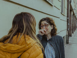 POLAND. Krakow. 18 March 2022. Oksana and Susan saying goodbye to each other. Oksana came from Lviv, Ukraine, to Krakow to bring documents to Susan and pick up cash to pay the surrogate mothers.