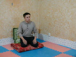 KAZAKHSTAN. Almaty. January 2022. Zhanbolat Mamay is a political activist and founder of The Democratic Party of Kazakhstan (unregistered). He was detained on January 4th and beaten by police for two days. Since his release he was staying not with his family but at his friend’s home for security reasons.