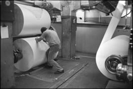 FRANCE. Ile-de-France region. Paris. 9th arrondissement. Rue des Italiens. Printing house of the french daily newspaper "Le Monde". Last days of work with a traditional rotary press before moving to a high-tech printing house. Saturday, September 2nd, 1989.