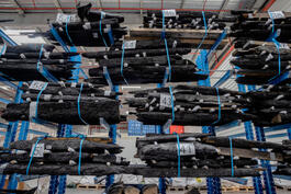 FRANCE. Saint-Witz. January 24, 2022. Storage place for debris (stones, calcined wood and iron) retrieved after the Notre-Dame fire. Research operations on calcined wood are carried out under the direction of Florence Mousset, study engineer responsible for movable archeological assets at the DRAC, and by Olivier Girarddos and Michel Lemoine of the CNRS.