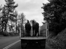 GREECE. Evia. November 2021. Due to the wildfires, horses are the only way to get in the burned island areas.