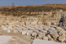 FRANCE. Oise. Bonneuil en Valois. 07 March 2022. La Croix Huyart stone quarry. Extraction of stones for the reconstruction of Notre-Dame de Paris. The stone used for NDP is the hard H4 bench.