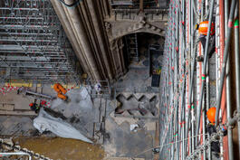 FRANCE. Paris, the 30th of april 2021. Notre-Dame's reconstruction. Removal of a net above the transept.