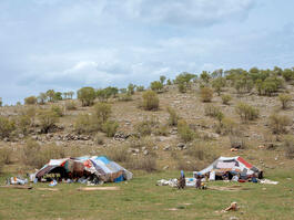 Turkey, Mardin. 2021. Masallah’s family seen near their tent....
