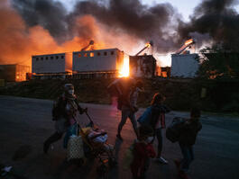 GREECE. Lesbos. 2020. Fire in Moria refugee camp.