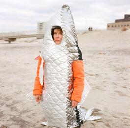 Winter Swimmers group organiser Riitta Ikonen in her fish costume.