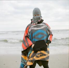 A participant with his octopus face mask to keep him warm and disinfected.