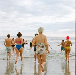USA. NY. January, 2021. Rockaway beach in winter, where the group of people are coming together and swim.