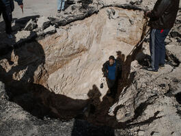 SYRIA. Damascus. 14 December 2024. People looking into a hole...