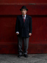 JAPAN. December 2024. Portrait of Keizo Watahira (79 years old), survivor from the Hiroshima Nuclear bomb. He was 2 km from the epicentre of the explosion.