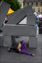 GB. England. Wiltshire. Salisbury. Ageas Salisbury International Arts Festival. This year's programme running from 27 May to 11 June 2016 is focused on the arts and culture of New Zealand. Here, in the Market Square, Block explores the challenges and contradictions of living in the city and what happens when dance and circus skills collide. 20 oversized blocks are deconstructed and reformed into a variety of shapes on which the performers play and with which they move. 2016