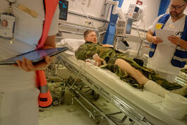 NORWAY, Tromsø, 2024/3. Norwegian Army training as part of NATO "Steadfast Defender 24" excercise. Simulation of a terror attack and bombing of a school with many civilian casualties.
