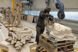 FRANCE. Paris, the 13th of february 2023. restoration and reconstruction of Notre-Dame. "Loge des sculpteurs" (Sculpture space).