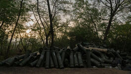 UKRAINE. Siversk. August 15, 2022. Piles of used 155mm artillery shell containers. On the front line, there are two kinds of sound: shelling and/or silence.