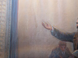 LITHUANIA. Grutas. 24 May 2022. Fragment of a painting at Grutas...