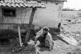 An elderly man, one of the few civilians that remains in her home near the front line village of Huliapole, eastern Ukraine.