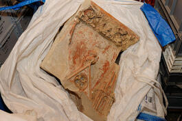 FRANCE. Seine-Saint-Denis. La Courneuve. 30 June 2022. Elements from the "jubé" of Notre-Dame found by INRAP archeologists.