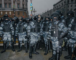 RUSSIA. Moscow. January 23, 2021. Pushkinskaya Ploschad. Pro-Navalny Protest. Omon forces lining up.