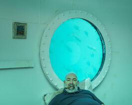 PANAMA. 2025. Rudiger Koch in his undersea chamber off the coast of Panama.
