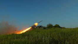 UKRAINE. Kurakhove, Donetsk. 2023. A 59th Brigade artillery unit fires a rocket. Once a target had been confirmed, they would drive to the position, adjust the coordinates and fire within minutes. The commander would confirm whether the target had been hit or not. Then another two or three rockets could be fired before they swiftly relocated under another tree line lest they be targeted and take return fire. It’s all “shoot and scoot,” but also to conserve ammo.