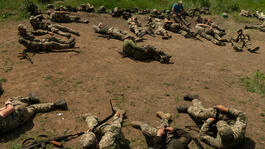 UKRAINE. Kurakhove, Donetsk. 2023. Soldiers of the 59th Brigade enhance assault readiness and train to deal with a range of combat medical emergencies. The long-anticipated counteroffensive has been silently and cautiously under way on the eastern and southern fronts to puncture Russia’s defenses. Every square meter gained will require a slow and grinding battle.