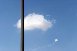 A rocket launched by Hamas intercepted by an Israeli missile.
