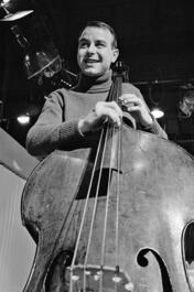 FRANCE. Paris. 7th arrondissement. ORTF, stage 4. "Nouveaux Dimanches" TV programme directed by Andre MORICE and produced by Raoul SANGLA. The French jazz musician Henri TEXIER (double bass). Before fiming the TV programme. ART FARMER QUARTET. Sunday 24th March, 1968.