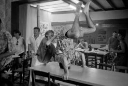 FRANCE. Aquitaine region. Gironde department. Uzeste. 12th edition of the "Uzeste Musical" Festival. Spanish spectators at lunchtime. Sunday 25th August, 1991.