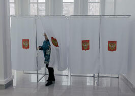 RUSSIA. Belgorod. 15 March 2024. A polling station in a neighbourhood in Belgorod that was heavily shelled this Friday morning.