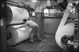 FRANCE. Paris. 9th arrondissement. Rue des Italiens. Printing house of the french daily newspaper "Le Monde". Last days of work with a traditional rotary press before moving to a high-tech printing house. Saturday 2nd September, 1989.