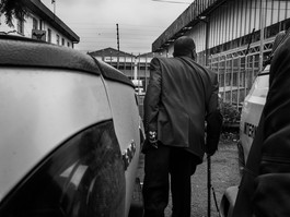 Ameha Mekonnen outside his office, going to have lunch in one of the small local restaurants close to his workplace.