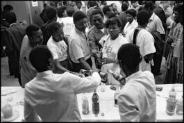 PEOPLE'S REPUBLIC OF CONGO. Brazzaville. "M'Bamou Palace" Hotel. "Decouvertes 85". Annual song contest organised by RFI (Radio France Internationale) and more than 60 radio stations from Africa and the Indian Ocean, with the participation of the Agency for Cultural and Technical Cooperation, the African recording industry, the African Cultural Institute, the French Minister for Foreign Affairs, the magazines Amina and Calao, the SACEM and TF1. Reception organized by Radio France Internationale in honor of “Decouvertes 85". Thursday 24th October, 1985.