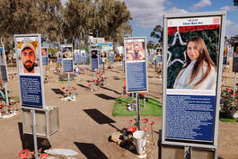 ISRAEL. Negev, Reim, the 1st of October 2025. On the site of the Nova music festival where 379 young people were killed and hundreds injured on October 7, 2023. Relatives and friends have mounted pictures of those killed and often come to pay tribute. There is often a text about them.