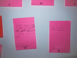 USA. NYC. 2013. From “Balloons for Kabul,” a pop-up event at a gallery in New York’s Lower East Side. Hundreds of pink balloons floated around the space, and pink Post-it notes were available to write to the people of Kabul. According to the organizers, “We will give away 10,000 balloons to adults (in Kabul) who are commuting to work at the beginning of the work week to celebrate them as individuals and as a community. We intervene in their daily routine to share with them hope, wonderment, and possibility.”