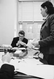 USA. New York City. 1955. James Dean in the office of his agent, Jane Deacy.
