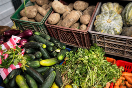 COLOMBIA. Morroa Municipality. July 2017. Corozal market. Oneida Mercado (Myriam's sister) is selling her products in the market. (Yams, yuka, herbs, tomatoes).