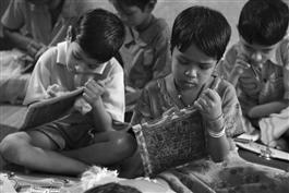 INDIA. Mumbai. Children living in the slums are being taught Maths and English as part of an educational program sponsored by Novartis. 2007.