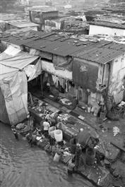 INDIA. Mumbai. Dharavi-the biggest slum area in Mumbai. Stagnant...