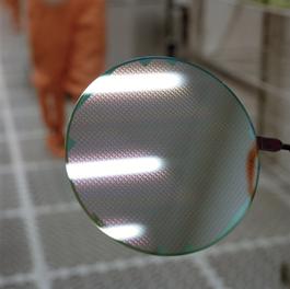 USA. Arizona, Phoenix. The 'Clean Room', or as it is locally known, 'The Fab', where the atmosphere is highly filtered to avoid contamination on the Silicon wafers, staff wear special clothing to avoid the spread of fibres. 2007