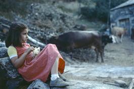 SPAIN. Galicia. Young girl on farm. 1985.