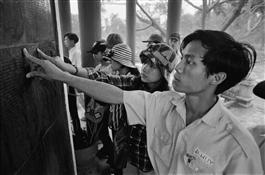 VIETNAM. At the Truong Son cemetery situated on a hill surrounded by eight others in Gio Linh district. It is the final resting place for over 12,000 combatants, many of whom died protecting the nearby Ho Chi Minh Trail. At the cemetery there is a wall, the only one in Viet Nam, with the names of the fallen heroes. 1999.