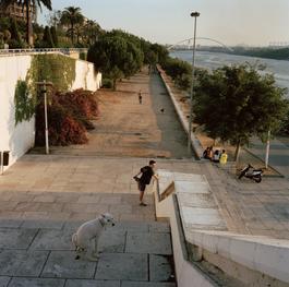 SPAIN. Seville. Dusk on the banks of the Guadalquivir, looking towards the bridge designed by CALATRAVA. 2003.