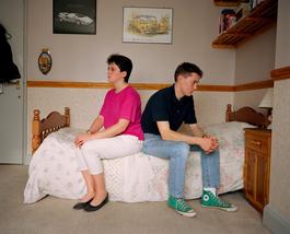 GB. England. From 'Signs of the Times'. 'It was very masculine when I came in here, so I put my quilt out - the flowery one which he detests'. 1991.
