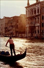 Europe. Italy. Venezia. Venice. A gondolier on the Grand...
