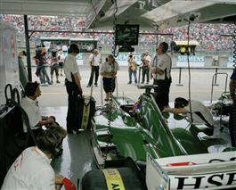 JAPAN. Suzuka race track. Jaguar pit garage. 2003.