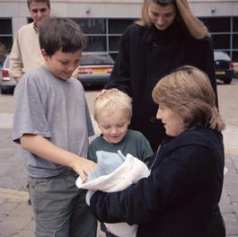 G.B. ENGLAND. Yorkshire. Leeds. The birth of Peter MARLOW and Fiona NAYLOR's third son. Welcoming the new arrival. 2003.