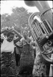 GHANA. Ghanain musicians and dancers celebrate during a state visit by Queen Elizabeth II. 1961.