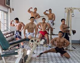 MYANMAR. YANGON. Bodybuilders training at the Myanmar Body Building Federation. All the equipment comes from donations. 2013.