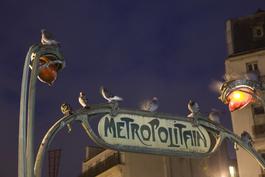 France, Ile de France, Paris. Close to Montmartre in the Paris red-light district of Pigalle on Boulevard de Clichy in the 18th arrondissement, The Art Nouveau entrance Blanche metro station