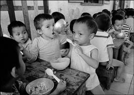 Vietnam. Orphan children of mixed American and Vietnamese parents eat a meal in an orphanage. 1972